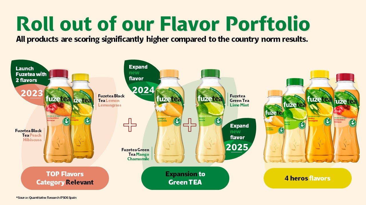Fuzetea es la opción más sana de la marca Coca-Cola. Fusión de tés con frutas, esta combinación de sabor explosiva es la gran apuesta de la multinacional en el mercado de las bebidas con teína y saludables. Melocotón, limón, hibisco… y las hojas del té. Una bebida que te da energía y te cuida. Su presentación debía reflejar toda su esencia, por eso creamos algo muy dinámico y visual, empleando sus características hojas como elemento gráfico. Al igual que Coca-Cola, nosotros tenemos la fórmula secreta… pero para diseñar presentaciones impactantes.